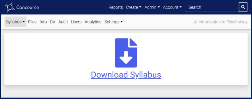 There are lots of different ways that institutions can configure Concourse. If your institution opted for the unstructured syllabus package, also called Concourse Starter, then instructors and other syllabus editors upload a file to courses rather than creating and editing syllabi within Concourse. Concourse can accept any file type, with the only limitation being a maximum file size of 100MB.